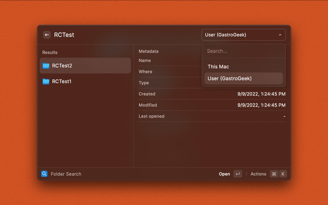 /)/path/to/plugins and /path/to/plugins/ work)/Users/<username>/Library/Application Support/Raycast/extensions/folder-search/plugins//path/to/your/folder-search/plugins/⌘ + ⌥ + ↑ - Navigate to enclosing folder⌘ + ⌥ + ↓ - Enter selected folder⌘ + . - Copy folder⌘ + ⇧ + . - Copy folder name⌘ + ⇧ + , - Copy folder path⌘ + ⇧ + L - Create quicklink⌘ + ⇧ + P - Toggle pin status⌘ + ⇧ + D - Toggle details view⌘ + ⇧ + S - Move Finder selection to folder⌘ + O - Open with...⌃ + X - Move to Trash