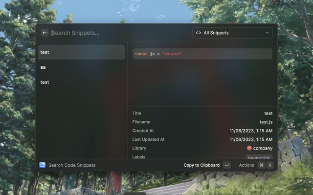 One local-first snippet management extension for raycast. Store your code snippets and export them freely when you need it.
