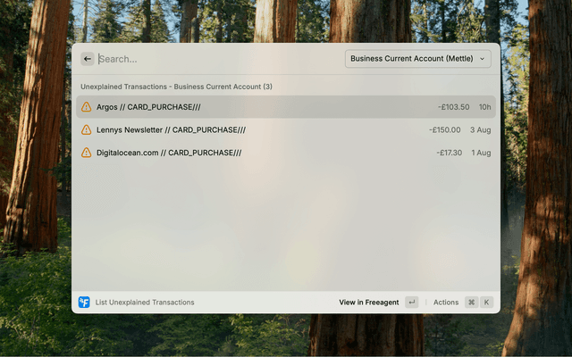 This Raycast extension allows you to interact with your FreeAgent account directly from Raycast, providing both traditional commands and AI-powered tools for financial analysis and management.