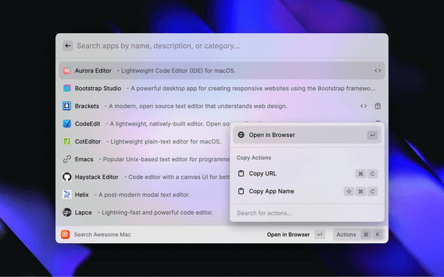 A Raycast extension that lets you search through the curated list of awesome Mac applications, tools, and utilities directly from Raycast. 🚀