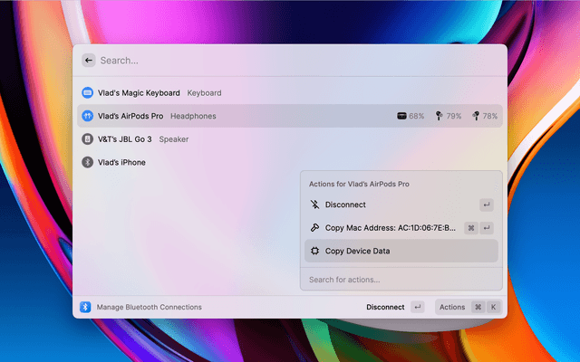 This extension lets you control your Bluetooth devices with a few keystrokes.