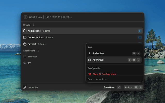 While this extension brings the leader key concept to Raycast with additional features like real-time navigation and Raycast-specific integrations, it maintains the same hierarchical philosophy that makes mikker's original app so effective.