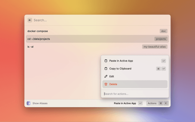 Navigate through and quickly retrieve all your shell aliases
