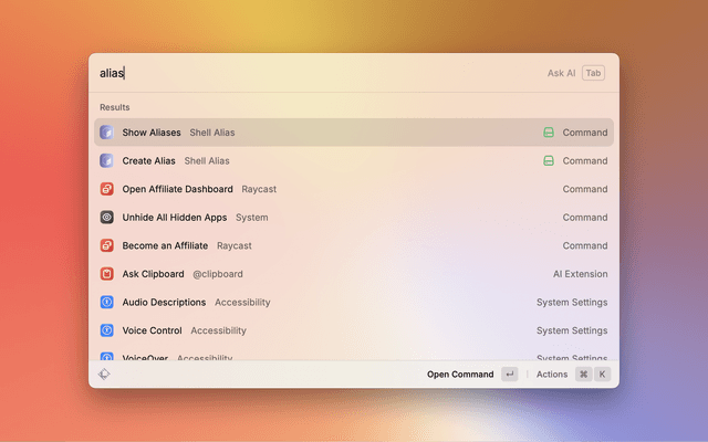 Run shell commands from Raycast