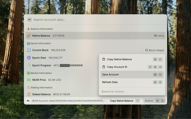 - Native Balance: View your NEAR account's native balance with USD conversion (formatted to exactly 2 decimal places)