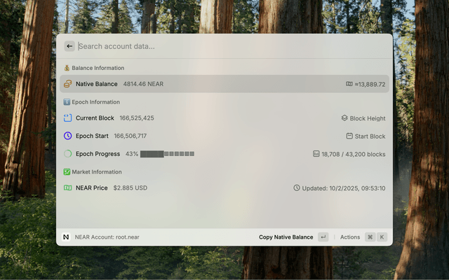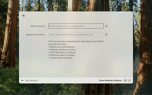 - Install the NEAR Rewards extension from the Raycast Store