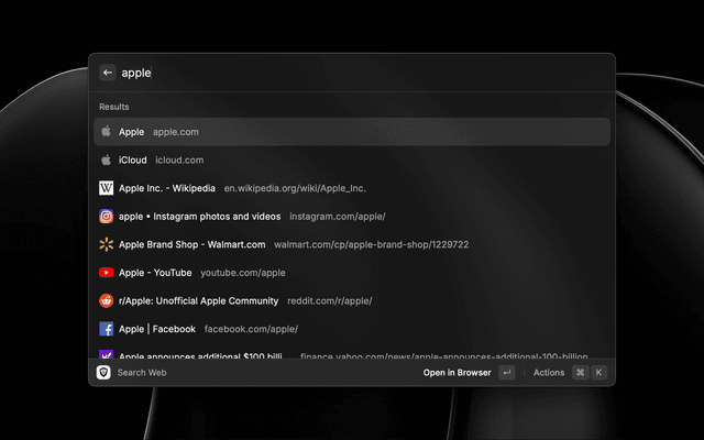 • Results directly in Raycast