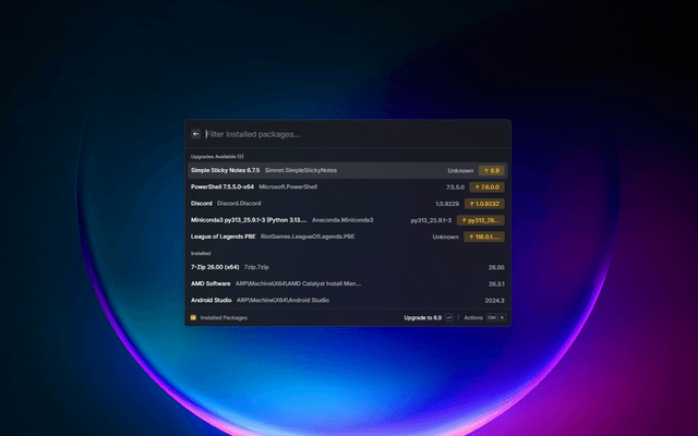 Search, install, and upgrade Windows packages directly from Raycast using Windows Package Manager (winget).