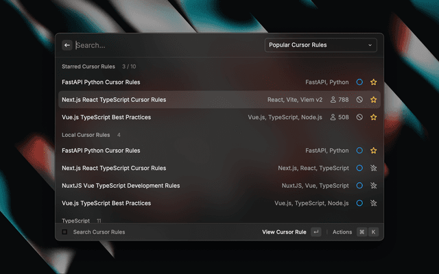 - Starring System: Save up to 10 favorite cursor rules for quick access.