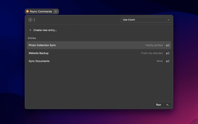 4. Run one of your commands directly from Raycast or copy it to the clipboard.