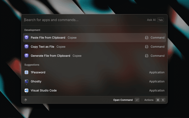 It generates a text file from last entry in your clipboard and pastes it into the selected area.