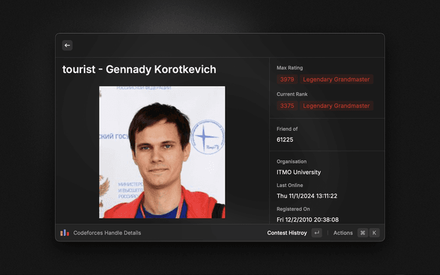 Gives details about latest contests and details about any handle