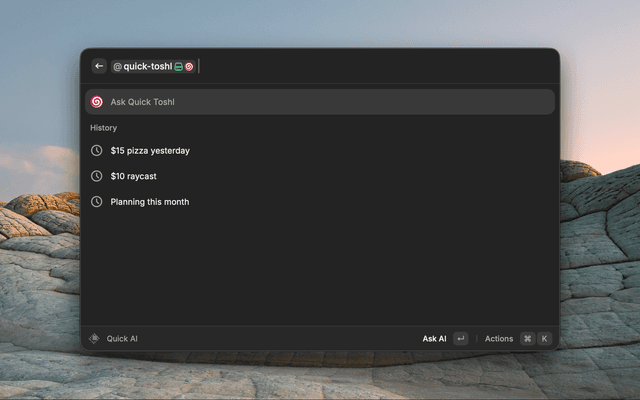 A powerful Raycast extension for managing your Toshl Finance expenses, income, and budgets with both manual commands and AI-powered natural language interactions.