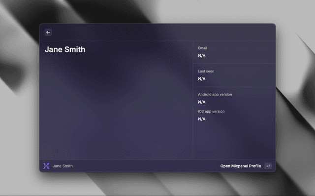 This extension lets you find a user from your Mixpanel Dashboard.