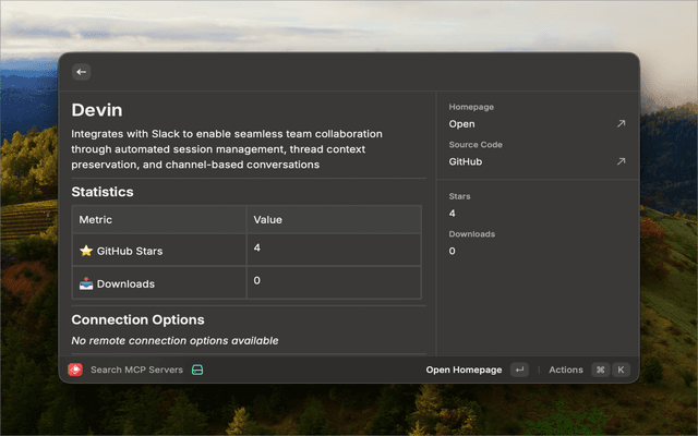 Search and discover MCP (Model Context Protocol) servers from the PulseMCP registry directly in Raycast.