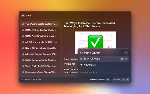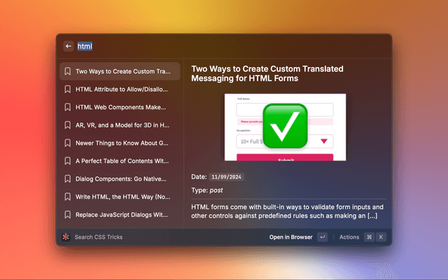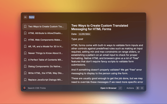 Search articles and pages on the CSS Tricks website.