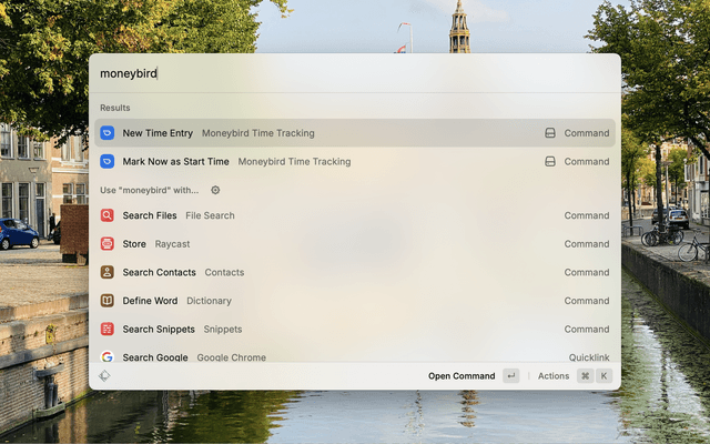 A Raycast extension that allows you to quickly manage time entries in your Moneybird administration without leaving your keyboard.