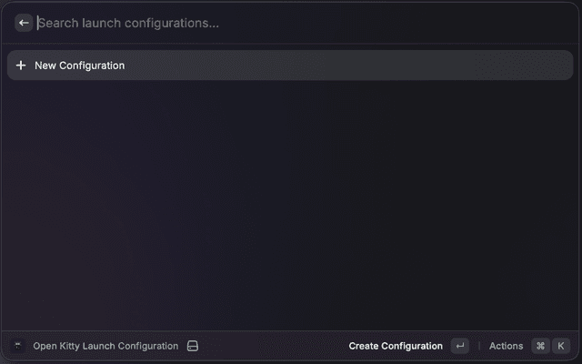 ⌘RDefine and launch multi-window, multi-tab, multi-pane Kitty sessions from YAML configurations stored in Raycast.