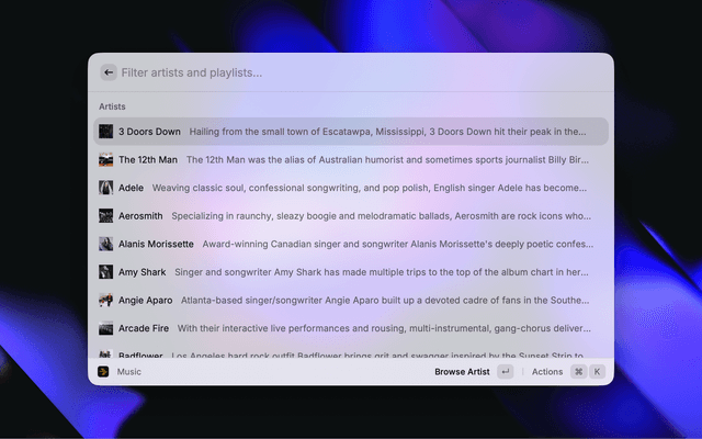 • Show configurable track ratings in Raycast using 5 Stars, 5 Stars (Half Stars), or 1 Star.