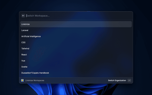 Linkinize Raycast extension makes it easy to access your bookmarks without leaving your screen.