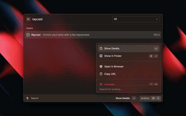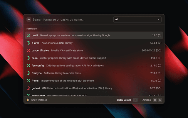 Search and manage your brew casks and formulae from Raycast.