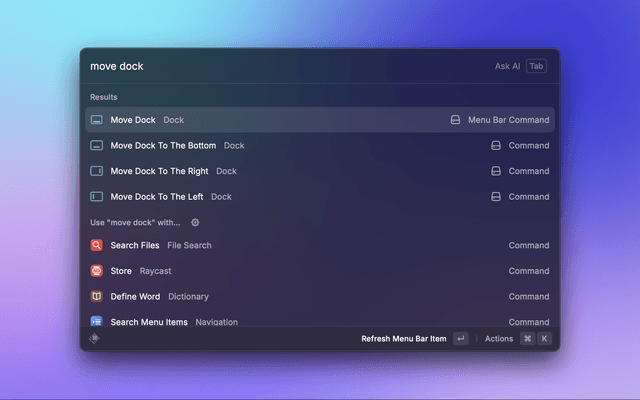 The extension includes a MenuBar command that is disabled by default. For easy access to commands via MenuBar, enable it in Preferences.