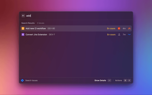 ⌘ + K and scroll down to Configure Extension. Enter your email, API token, and Jira site URL (without https://) on the right. Note that all three must be provided to use API tokens.You can change the default Git branch name in preferences; the following keys are available: