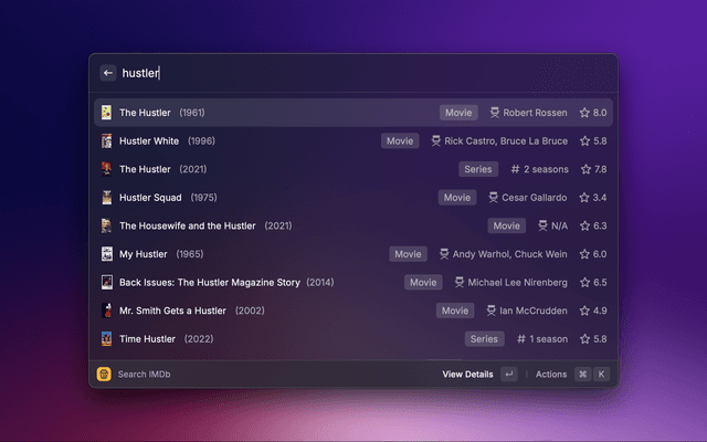 A Raycast extension that lets you easily open your favorite film or tv series on IMDb.