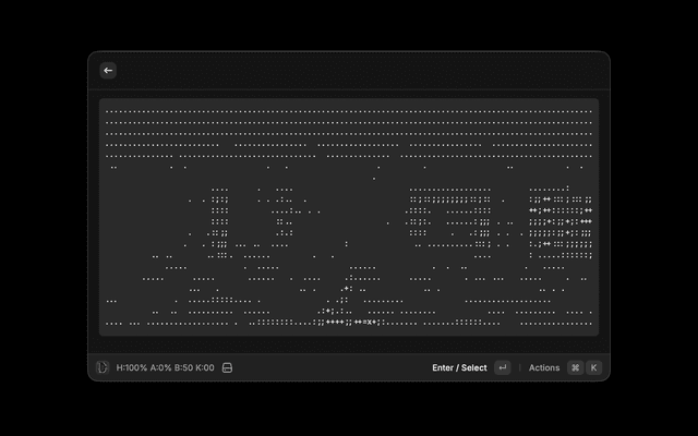 • Some menu interactions are challenging in ASCII mode (use Raycast menus for configuration)