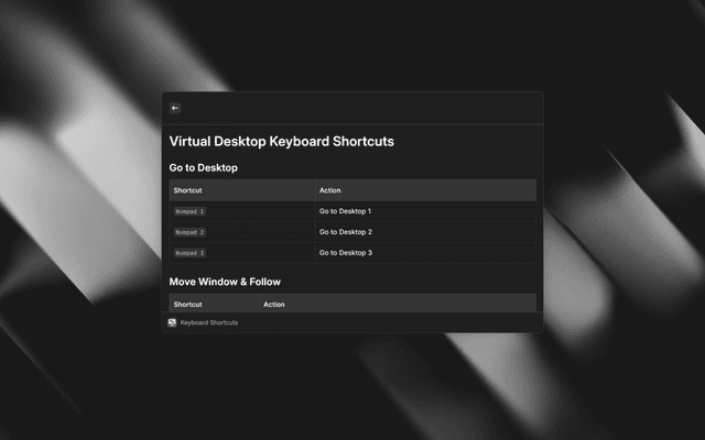 VD.ahk provides the core virtual desktop functionality for Windows, including: