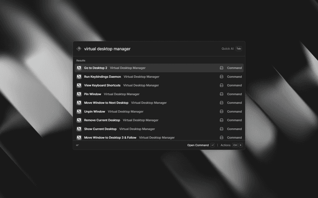 Manage Windows virtual desktops directly from Raycast using AutoHotkey. Brings hyprland like experience to windows.