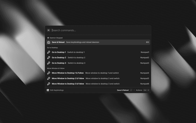 • The daemon automatically reloads when you save changes in Edit Keybindings
