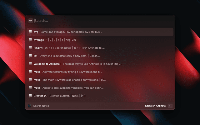 Extension to control Antinote app with Raycast.