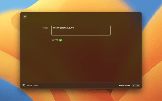 Raycast extension Send Tweets on twitter.com