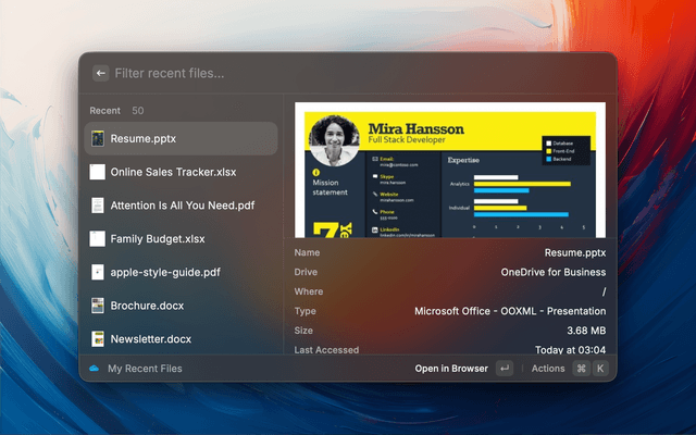 - Open files in browser or desktop Office apps