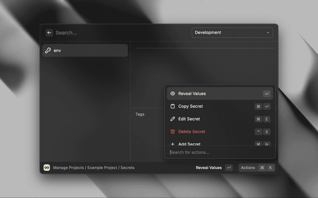 verify and renew token on each subsequent run; In normal cases the token is valid for 30 days so you can check "Disable Token Verification" in Preferences to disable this behavior.copy or save all secrets of an environment in .env format (change the environment using the dropdown). The file is saved in the "Downloads" folder (if the environment is not "production", the environment is appended to the extension e.g. .env.dev)Looking for more cool OSS extensions? Try these: